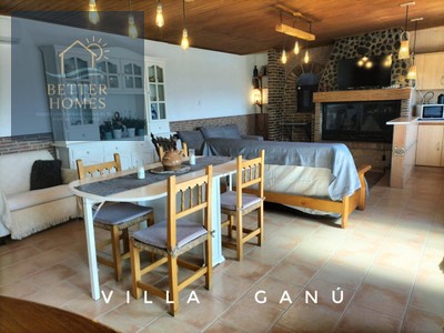 La vivienda principal dispone de un dormitorio, un baño completo, salón con chimenea y cocina americana, ideal para una vida cómoda y funcional.