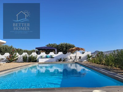 La finca incluye una piscina privada de 4x8 metros, perfecta para refrescarse en verano, todo en un entorno natural que transmite tranquilidad.
