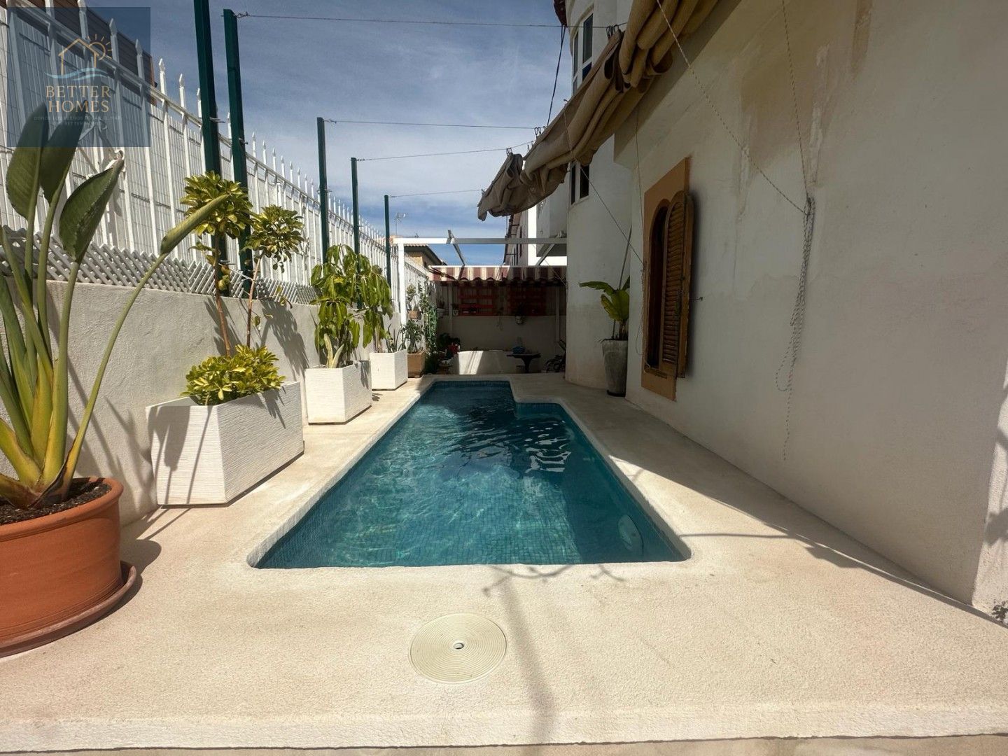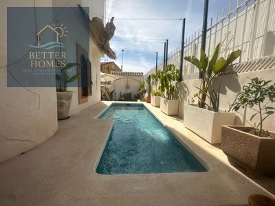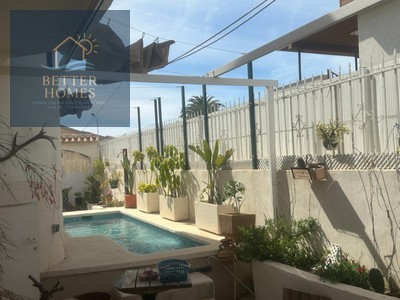 Ha sido ligeramente reformada. Este dúplex cuenta con 110 m² de espacio habitable y un amplio porche, además de zonas laterales y traseras para disfrutar de la jardinería y la piscina.